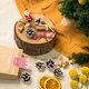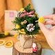 ② 选择正面位置插上蝴蝶结,再使用白胶或热融胶,慢慢地一颗颗黏上果实花草们~