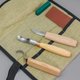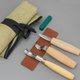 - S14 C1 木雕刀(削刀) + SK1 虎克刀 +K8a/14 弧型凿刀+ 磨刀皮革&抛光块1组+ 帆布收纳卷