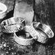 以手工凿刻呈现层叠樱花意象,温柔包覆整圈戒身,