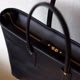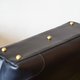 底部有 5 个底钉,因此不会直接接触地面。保护皮革免受划痕和污渍。如果必须将袋子放在潮湿的地面上,可以防止袋子底部弄湿。内底部附有底板,即使在搬运较重的文件时也能牢固支撑底部。包的底部边缘缝有一块皮革,以增强耐用性和设计感。