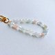 💠 材质:日本包芯棉线、日本弹性金钢丝、ABS珍珠、14K镀金扣锁、编织布+PVC吊绳挂片