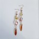 时尚的椭圆形圈,带有摆动的火抛光紫珠,是成熟的粉紫色、不透明米色和黄玉色的耳针的火抛光捷克珠和锋利的捷克标签珠的混合。
