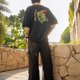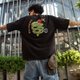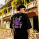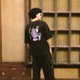 超大黑T恤,正面有口袋,背面有刺绣图案。柔软的羊毛布料,带有蛇、蝙蝠和蝎子等危险动物图案。可作为衬衫穿着。