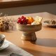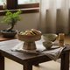 这款高脚碗的灵感,源自于树木的年轮与制陶者手中的拉坯痕迹。 一圈又一圈的纹理,仿佛诉说着岁月的故事。 它不追求光滑完美,而是拥抱粗糙与朴拙的“侘寂”之美。高脚的设计,是对食物的一种敬意。