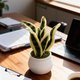 用毛根细细捲出的立体虎尾兰,叶片挺直,象征聚财、招福与稳定能量。