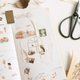 超服贴的转印贴纸,可以呈现出仿佛印刷效果,透色可堆叠使用,无接痕的特点让你可以自由拼贴。 无需水、熨斗或其他工具,用手指刮一刮即可转印在手帐、笔记本、桌历、卡片…等纸张上,一包内有两张不同图样。