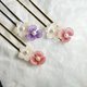▋不使用任何胶类进行黏合,整体使用线材(多数均为保色铜线,少数小材料使用缝纫线或其他线材)绑缠,加上绕线工艺、圈环、花片等各样材料连接/固定,以确保发簪可坚固、长久的使用。