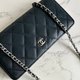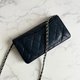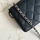 【LA LUNE】中古二手Chanel黑色鱼子酱皮革WOC长夹钱包斜背侧孭单肩链条手袋