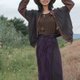 風起時,衣擺颯颯作響,手肘的深紫貼布,是流浪的補丁,也是紫色的月亮,是經歷磨礪的浪漫,粗糲卻生動。