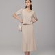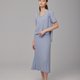裙身以宽正反针排列,直纹效果修饰身型,并呈现出宛如褶裙般的波浪效果,走动时优雅摆度、自然垂坠,展现都会女性的高雅质感。