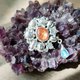 于是从位于中点的恒星代表太阳石为核心(这颗也是虽然尺寸不大但火力十足的闪亮裸石),四周围绕着星星与其他星系、一些我们可能更看不清的光源体以宝石的形体来代表,对仰望宇宙的我们来说那些都是充满想像、未知而闪亮的物体。垂坠的部分最初其实选了其他比较大颗的裸石想一如往常做在正下方,但制作到一半的时候觉得标准的形状有种莫名的束缚感,于是调整了全体的平衡在右下方留了一个小小的突破口,挂上了蓝光鲜明的月光石水滴象征流星或是星船,随着步伐晃动时可能意味着他正在接近这个星系或是准备从这个星系出发,希望以这样的安排让这件作品能有更多的想像自由。