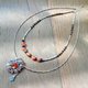 以同一主题制作可互相搭配的短项链也是这次的新尝试,主珠是连星的太阳石,象征着遥远彼方不同的星系,一起搭配的黑蛋白石与银曜石都是兼有暗色与闪现光亮的矿石,而碎银珠则是纯粹光亮的部分,希望能把宇宙的未知、变化与源自神秘和无垠的距离美感一同呈现。长度做在颈链ー锁骨链的区间内,叠戴或是单独配戴都适合。如果与主项链一起收藏有组合优惠价。