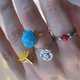 纯银戒指搭配手绘珐琅瓢虫。 可按尺寸定制。