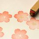 【使用したインク】 ●バーサマジック(小さいものはデュードロップという名前です) ピンクグレープフルーツ ●カラーパレット ゴールド 【サイズ】 写真に使用しているのはハガキサイズのカードです。 桜の花(台木)2.4cm×2.4cm 中心パーツ 8mm×8mm 長さ6.3cm 1,2枚目の写真のカードはハガキサイズです。 ※ばら売りは行っておりません。 ※カードはついていません。