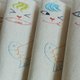 一针一线代替画笔手工刺绣出可爱并赋有童趣的猫咪表情笔袋 主要材质:日本亚麻棉、法国DMC绣线