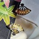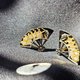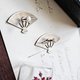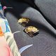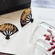 耳环为扇形构造,富士山与金色的寺庙、和服上常出现的花卉图案用金银两色在这小小的扇面上描绘得鲜活灵动。
