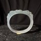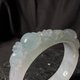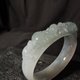 这只手镯肉质细密,冰种的水头,淡淡的蓝色调,手镯上雕刻着三只小猴子还有两颗寿桃,有给予福寿的寓意,是一只题材与质量兼具的美镯。