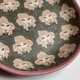 绞胎,意指不同颜色土的组合,用不同色的土把图案如花寿司般拼组成一长柱状,一片片切剖开来,会得到数片相似图案的土片,捏塑成盘。使用绞胎技法制作的器皿有其特色,图案是正反两面都有,由于是绞胎方式制作,图案在制作过程中会因为拍打、擀平而产生自然的图案变形,有着歪斜、扭动的改变,如同图案扭动着!