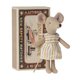 穿着可爱的经典白底条纹洋装,经典的小鼠姐姐住在精美插画的火柴盒内,火柴盒里有着一张可爱柔软的小床,采用柔软的面料织制。