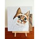 这幅原创丙烯画描绘了一只毛茸茸的姜黄色和白色相间的猫咪,它有着碧绿的大眼睛和细腻的毛发,画面生动传神,极富表现力。厚重的笔触、灵动的眼神和温暖的色调,仿佛猫咪正要发出咕噜声,直视着你。