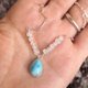 9*13mm水滴形的拉利玛,小小一颗却仿佛召唤了整座海洋,搭配冰块感的不规则月光石切角珠,视觉上清爽干净,非常适合炎热夏日。
