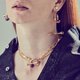 It's a Buckle Jewelry set that combines snowball and metal ball. It is a choker mixed with four different chains on a bold buckle. It is possible to create a bold and sophisticated style.