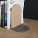 原革书档造型联想于台湾老砖房拱门,一种现代建筑遗失的房门曲条,搭配在方正的书丛中,增添一丝柔和。 皮革底面搭配实木,一柔一刚的材质,质感、细节提升外,同时能达到保护台面、止滑等细节要求。