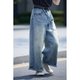 这条裤子,不能是薄料,不能,薄料完全无法承接她的廓形,她必须得有一定的厚度。所以,她是一条重磅的裤子,重磅不代表厚重,这是一种高质感所带来的触感,你收到一掂就秒懂,而上身的美感,你只需一套就懂。莼棉的粗斜纹牛仔布,她扎实,紧实,纹跟立体又清晰,肌理感强,带着自然的粗犷美。深靛蓝色,我们通过重水洗牛仔工艺,让她带着灰灰浅浅的蓝,如雪花般的复古感。
