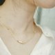采用几颗饱满光亮的珍珠,搭配具有切面的金色珠子,分别安排在计算过的链条比例中,无一可减也无需再添加任何装饰,是一条能够单独撑起场面,也能在叠搭其他饰品时,得到和谐与平衡的项链