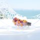A pressed flower of Lantana is enclosed in a cat's face. Glossy resin transparency, a little small hair clip.