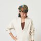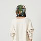 这是一顶设计得像头巾一样佩戴的帽子。宽松的穿着营造出时尚的波西米亚氛围。