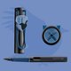 黑色ABS强化塑胶材质笔身与笔盖,蓝色笔夹造型设计,笔盖顶端与人体工学三角前端握把均为学院蓝色设计,使用黑色不锈钢笔尖,墨水辨识视窗
