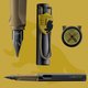 黑色ABS强化塑胶材质笔身与笔盖,黄色笔夹造型设计,笔盖顶端与人体工学三角前端握把均为学院黄色设计,使用黑色不锈钢笔尖,墨水辨识视窗