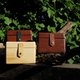 Sew leather with wood part by hand.