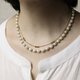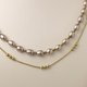 我们选用了天然淡水米形珍珠,饱满而带有细腻光泽。这些珍珠与精致的金色圆珠间隔串连,赋予了经典珍珠链现代的层次感和华丽度。