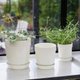 带底盘的 Elise花盆将颜色、形状与细节的设计表现极致,排水孔与底盘的高度设计,与实用功能相结合。 Elisa 花盆采用经典的炻器制成,具有柔和的圆形形状和简单的直线切割。表面印有漂亮的sagaform logo以及sagaform设计特有的条纹,三种美丽而自然的颜色,展现每个家庭温馨特色的户外花园或阳台空间。 Elise花盆共有三种尺寸以及三种色系可供选择。