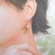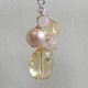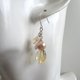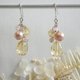 黄水晶和粉红淡水珍珠制成的耳针,颜色浅,透明度高。