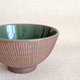 此作品采用信乐烧的土,经过辘轳塑形 → 削切碗的表面 → 刻划图案 → 素烧 → 在图案部分填入白色泥土并擦去多余部分 → 内侧施以青瓷釉 → 最终烧制等工序完成。器型厚度适中,方便拿握,碗口触感滑顺。内侧有美丽的冰裂纹。