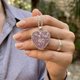这款紫水晶与蔷薇石英心形项链,将两种能量强大的宝石融合于一身,设计寓意深远。紫水晶代表着清晰的思绪与心灵的宁静;而蔷薇石英则被誉为“无条件的爱之石”。