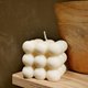 创意可爱的泡泡系列是无容器设计款式, 搭配托盘或石盘为家里摆设增添风采。可燃烧5-6小时, 点燃前请于烛身下方放置托盘,燃烧时蜡液会像火山熔岩般流出, 约至第二层会结束燃烧。