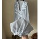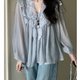 重工设计蕾丝灯笼袖镂空钩花法式温柔气质小衫(配内搭背心)