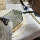 将玻璃切割后四面贴上铜箔再上一层锡,利用锡的结合使容器坚固,一点一滴的把结合处填满圆润,在使用氧化剂加速锡氧化变成黑色的边,使整体各位立体有质感 。