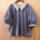 **【 衬衫领澎袖上衣/ 深蓝图腾 】**