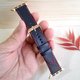 大约 5、6 年前,在网站上看到一条蓝色皮革 + 红色缝线的表带,作工很精致,配色十分活泼,版型也很优美,售价 1900 元,是香港颇有名气的手工表带商店的商品,心里很喜欢,但看了 2 年还是舍不得买,主要是价格与境外运费的考量,学做手工皮件 3 年以来,总想着有一天要自己做 1 条类似那种气质的表带,试做了几次自己都不满意,都差那么一点感觉,有皮革材质方面的、有版型方面的因素,直到最近各种因素都到位了,有买到适合的皮革、有开发出自己的版型刀模、合适的缝线颜色,还有适当的心情,成品的蓝比 5 年前看到的那条表带颜色深很多,多了一点成熟感。