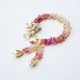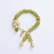 这款手链来自 Hinkik Jewelry 的橙花系列,采用白色珐琅橙花与天然橄榄石,并配有珍珠流苏。