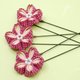 由亮粉红旧布料(和服布料)制成的樱花形状发饰 3 件组。
