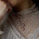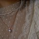 主石是一颗天然月亮石,心形切割,在光线下能呈现出迷人的蓝光,仿佛蕴含着神秘的月光。而镂空的吊坠扣镶有一颗小小的紫水晶,让整个设计更添神秘感。
