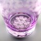 シャボングラスと呼ばれる淡いグラスに、満開の桜と舞い散る花びらを彫刻しました。側面全体と底にも桜を彫刻しており、上から覗けばまるで桜に囲まれたかのような錯覚に陥ります。