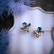 以两片立体金叶子,从两侧簇拥着湖水蓝莱茵石,像是用手捧着小脸般可爱,令人联想到一朵朵郁金香的模样。精致之余流露出自然的气息。宛如穿梭于怡人的晨间花园中,不期而遇见温柔。🌷💙