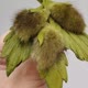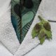 这款别致的胸针采用真皮精心制作,形似一株绿色嫩枝,缀以貂毛制成的叶片。